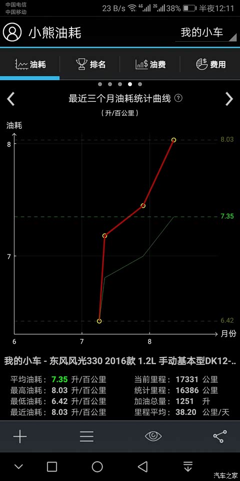 目前为止油耗表现在7到8升,折合每公里就是四毛多,可以接受了