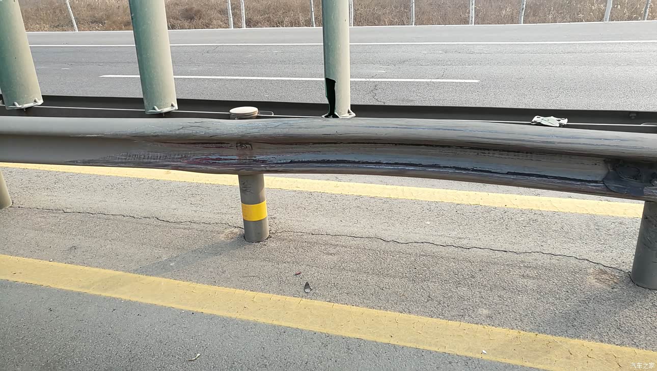 满地都是碎片,前防撞钢梁就是薄薄的一层,根本起不到防撞的作用。