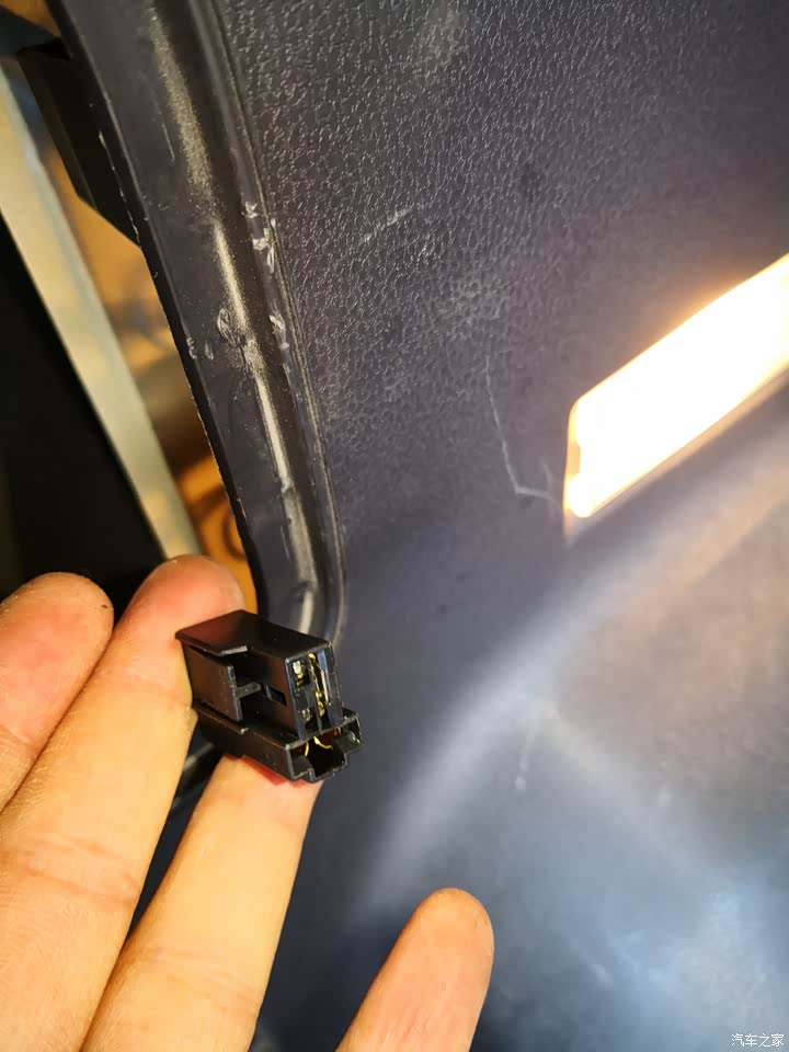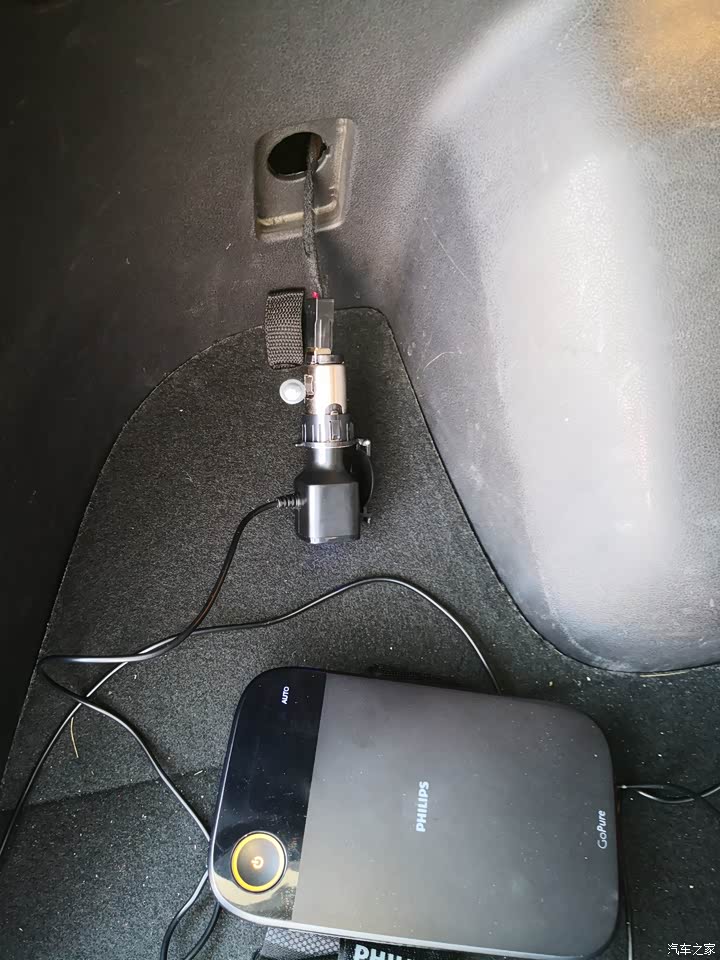 最近觉得空气净化器放前面声音有点大,想放在后座靠背上,但是从前面走线很麻烦。看到有网友改装后备箱电源,gs4后备箱有预留线路,自己在某宝买了点烟器插头价格不贵,把后备箱原车线路找出来,就是下图那个绑着白色胶布的那个插头,把胶布拆掉用手指勾出来本人手小还算顺利,从预留的孔位出来插上点烟器固定好就可以用了。后备箱可以插用电设备了还是比较方便的。