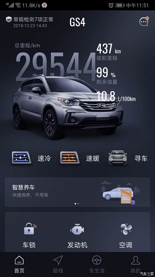 目前没有新的故障出来,只有那个智慧传祺远程控制功能本地区应为联通2G已经关闭了所以就废了。