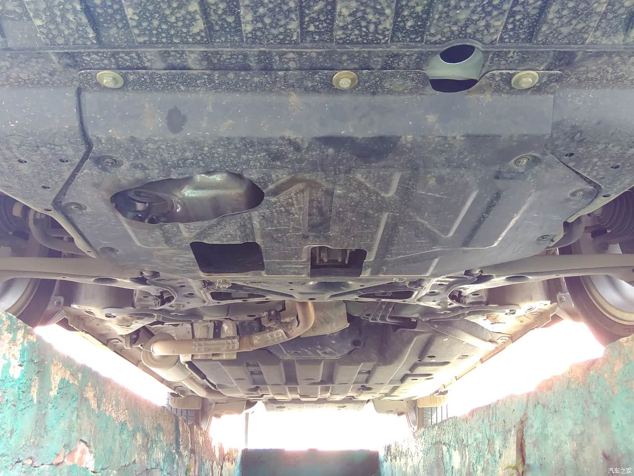 放一张裙底图片,可以看到底盘空气动力学优化还不错,护板是4S送的有保养预留口,小保养不用拆卸。