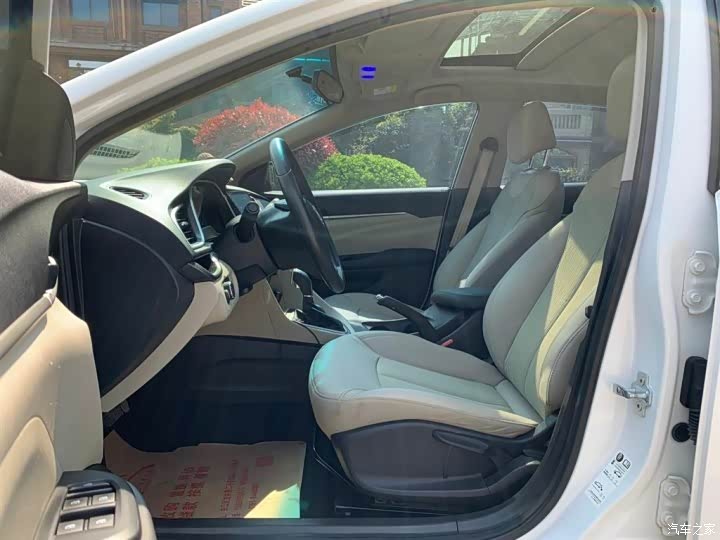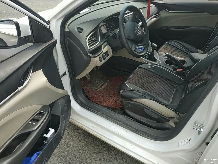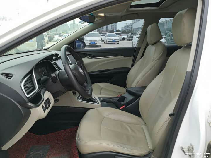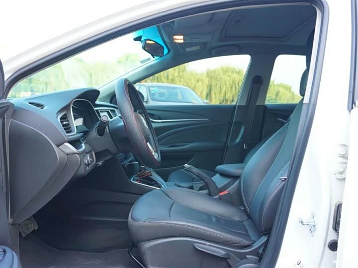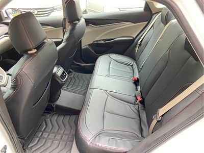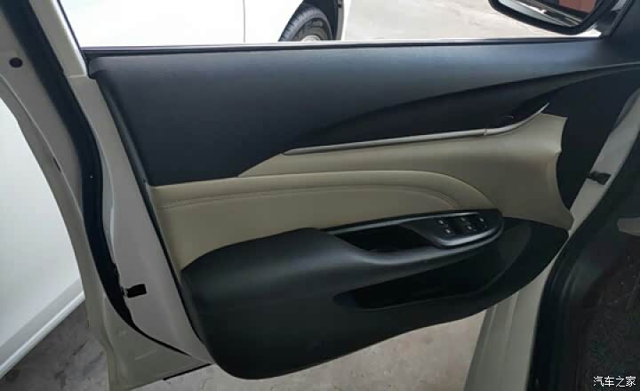 方向盘采用真皮包裹,握感不错。中控台采用的是黑色荔枝纹塑料,虽然手感不好,但是比较耐脏好搭理,中控整体采用银饰条装饰,仪表盘、中控屏幕、空调出风口周围都被点缀上,门板上也用银饰条点缀。座椅采用类似绒皮和皮革搭配的设计,档次瞬间上升了不少,摸上去手感也不错。