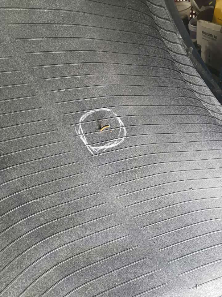 每次车子发动后都要看看胎压监测,这一次显示:右后轮被扎了!!!