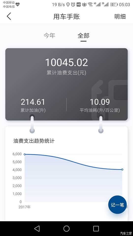目前跑了三万七接近三万八千多公里了,总共加了一万八千多点油钱,算下来0.48一公里,差不五毛钱的样子
