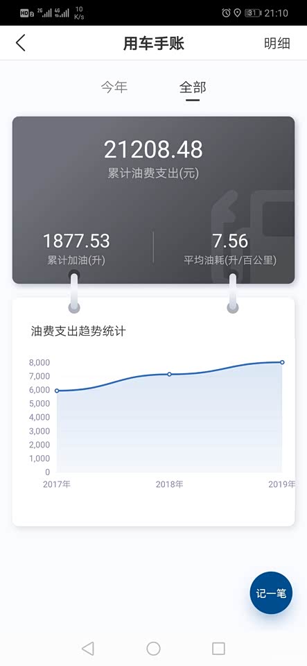 这个是iBuick自带的加油小计,只是加油的费用准确,其他的不行!老版只记油钱和油量,新版增加了公里