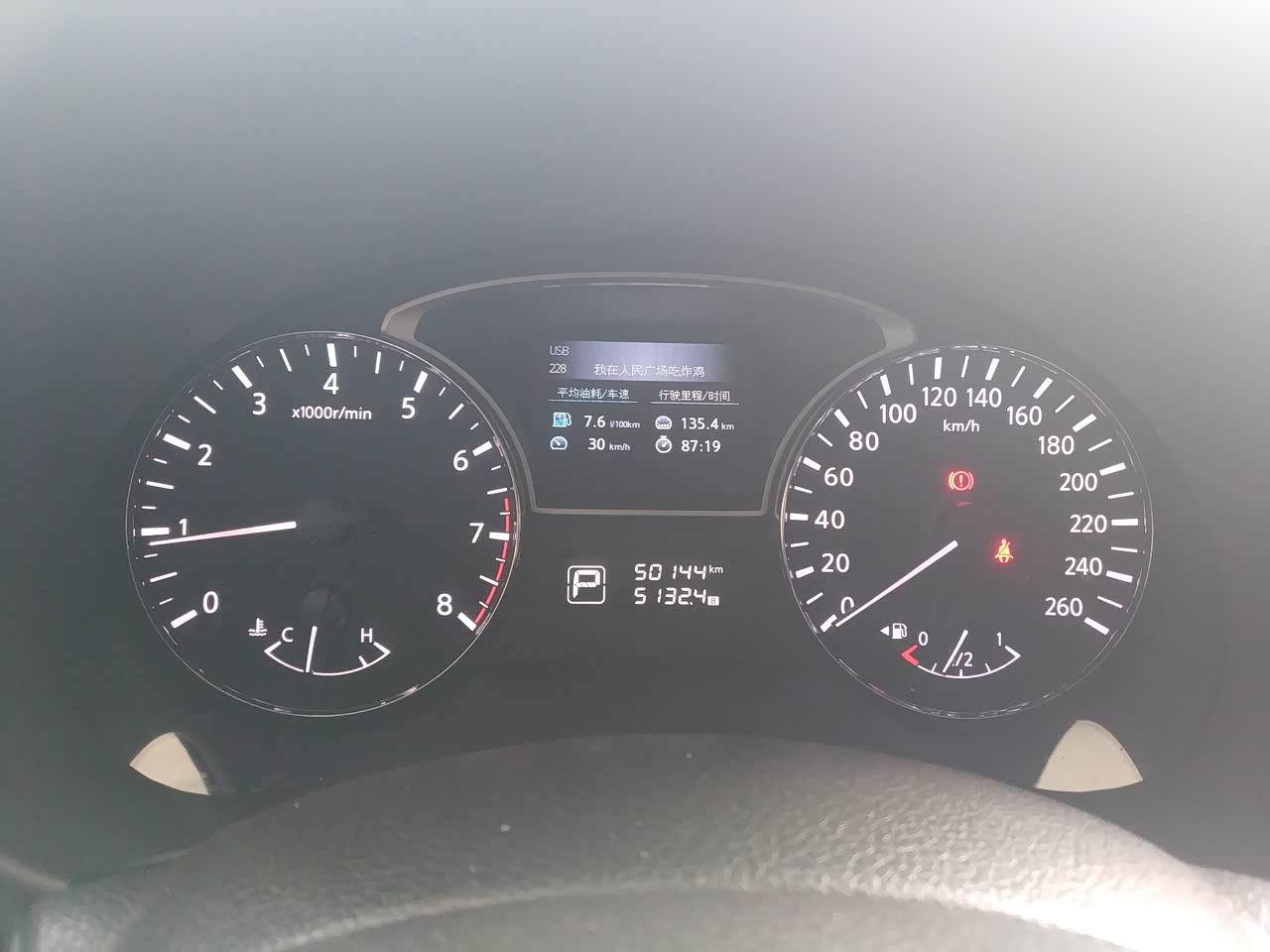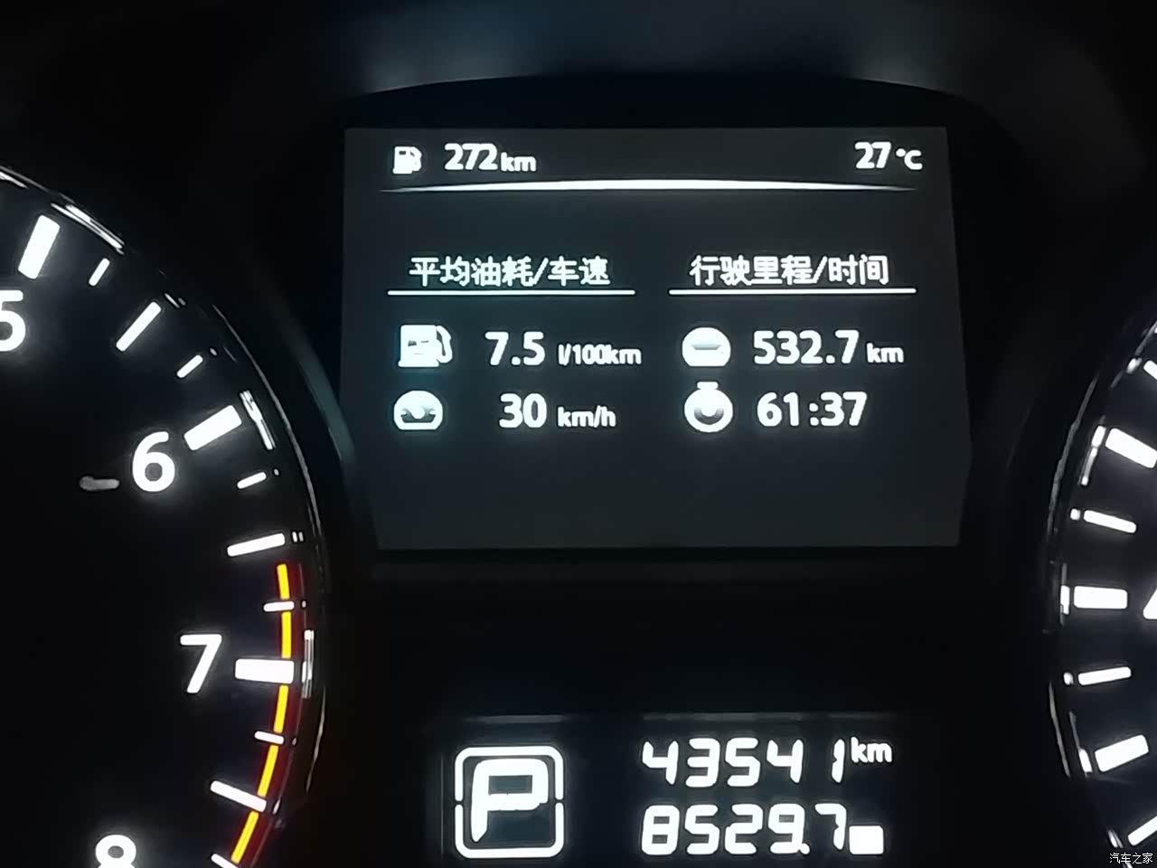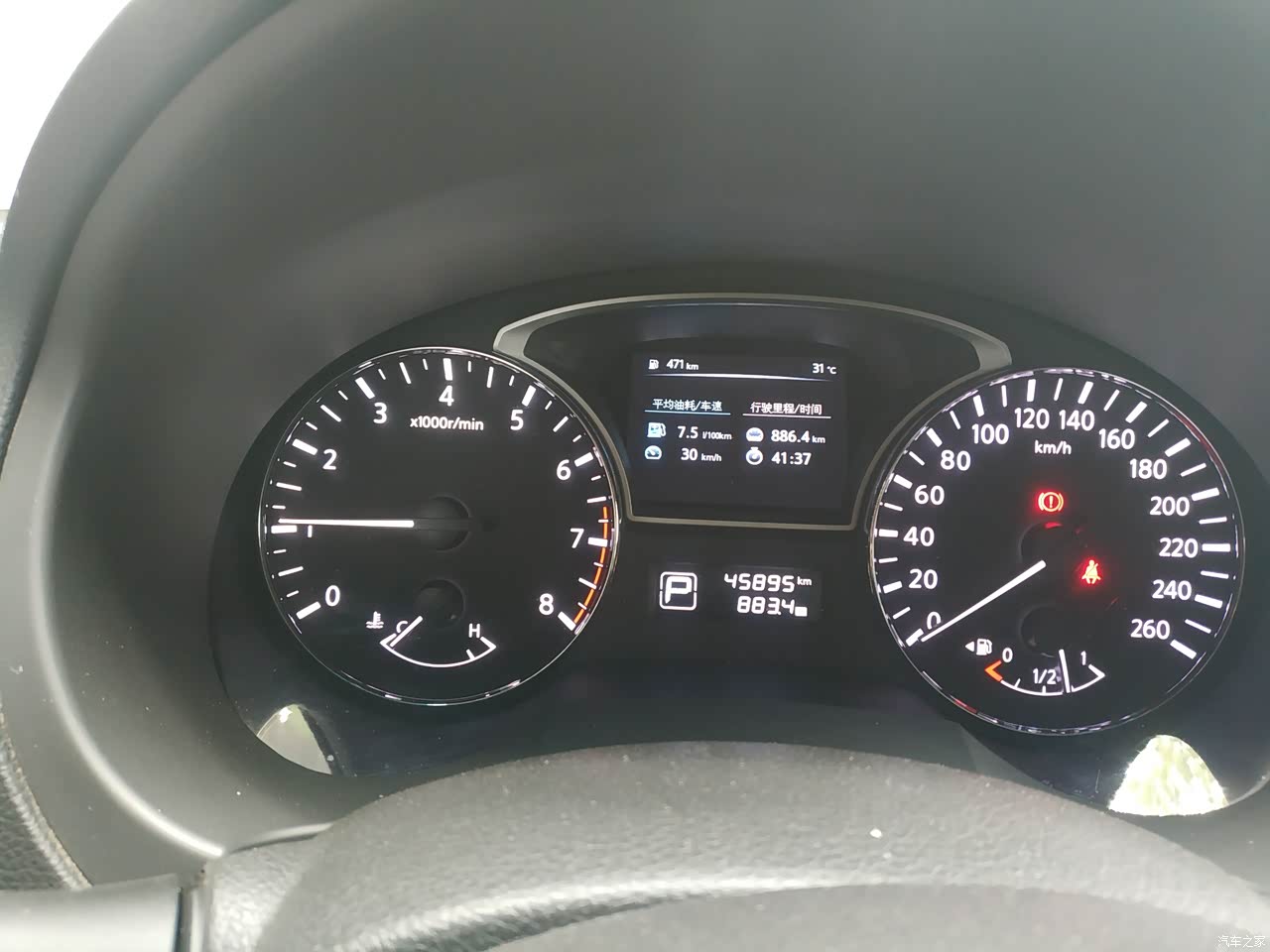 油耗说实在的,是天籁的优势吧,最近天气冷,一般来说油耗都比较高,但是最近我车子的表现特别好,行驶里程在40公里左右,基本上能开到6.1L/100km,对这个表现我实在是太满意了,现在稳定在7.5L/100km。