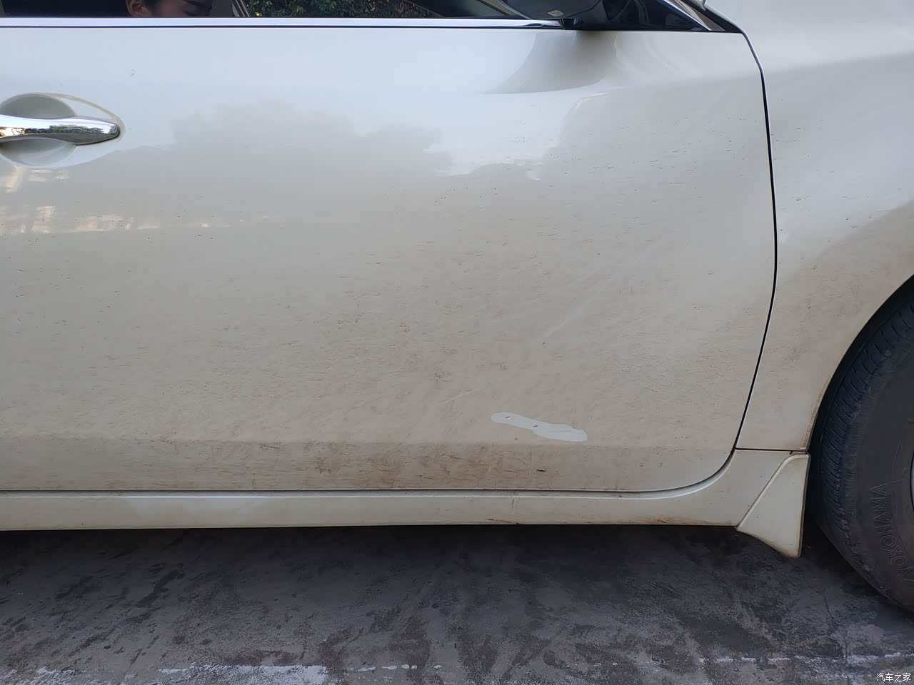 车子加了2000块钱买的珍珠白,这个白不同于纯白色,看起来有点发黄,刚买的时候都不像新车,现在没洗就更显久了!