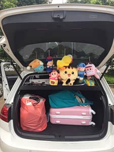 两厢车短板就是后备箱储物空间在同级别车型中没有太大优势,纵深比较小,但是因为掀背的缘故,开口比较可观,放入大件行李的时候比较轻松。但是储物空间只能放下一个24寸的行李箱,和两个大袋子,有图有真相。不过倒是可以挂一些娃娃。