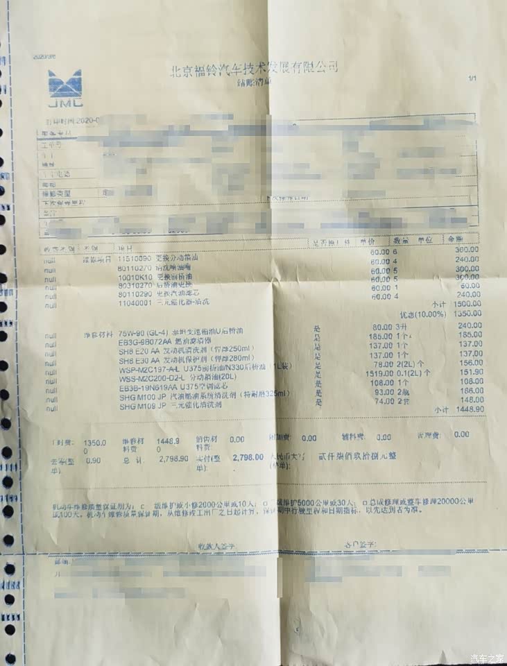 最近一次保养是40000公里,我的车强保时因为要走东北一大圈,所以2500公里就强保了,一圈走了80000公里,又做了一次保养。我买的保养套餐2500元做五次保养,所以每次机油机滤不再花钱。我个人认为保养套餐两年五次保养对于我老自驾游的人来说很划算。这次40000公里保养时除了换机油机滤,我还做了四轮轮换,制动液更换、电脑排气合集670元,价格我能接受,感觉可以。北京福玲的服务也很不错👍