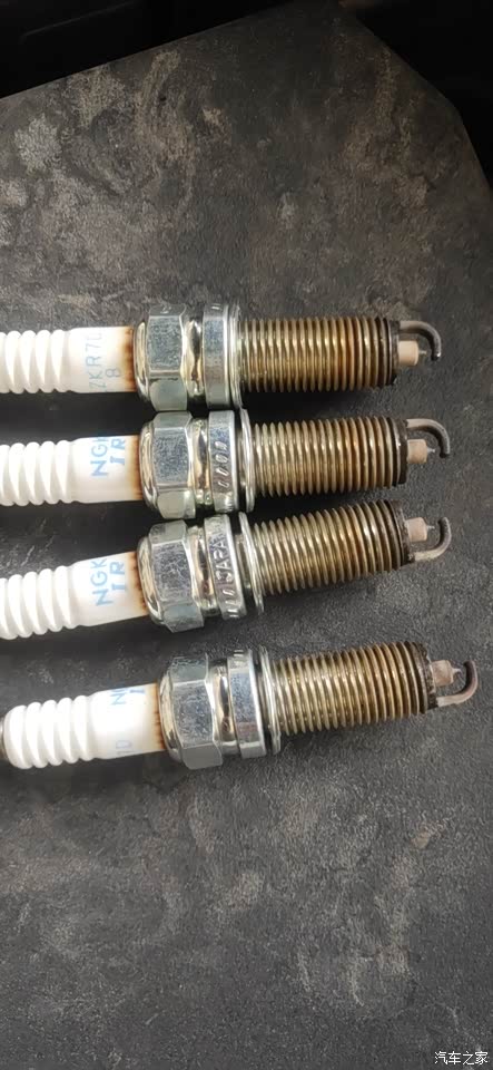 换下来的火花塞,烧的很好,我长期大脚油门,如果经常市区低速,很少上高转速的,建议这个公里数都可以换了