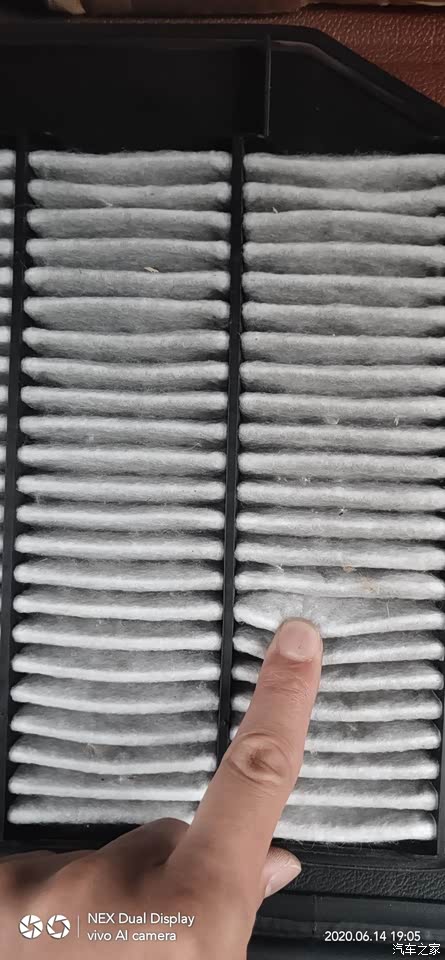 换下来的空气滤芯,也挺脏的,关键是有很多树毛毛,几十块钱东西没必要用那么久。