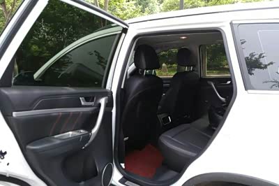 这车挺大的,后排的中间不会有凸起,可以坐三个人都很舒服。后排还能放倒,放倒后空间更大了。前排也很舒适,由于底盘比较高,车比较大,坐在驾驶位上视野很开阔。