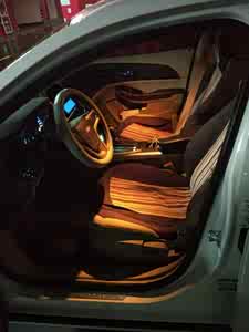 内饰很简单,颜色也很简单。我比较喜欢的两个地方就是两个方形的仪表框,转速和时速的那个,还有就是晚上很漂亮的淡蓝色氛围灯光,很能让人安静下来享受开车的感觉,享受所拥有的一切。
