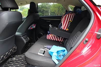 轴距是形容一辆车前后轮轴之间的距离,一般情况下,轴距越长,车的内部空间自然越大。中国人喜欢大,所以很多合资车型或豪华品牌国产后会推出加长轴版,牺牲驾乘体验来换取宽裕的空间。相比之下,雷克萨斯各车型都是只有标准轴距版,但不得不佩服雷车的设计师,对于内部空间的设计和利用能力很强,同等级的对标车型轴距基本达到2800 mm,而2660mm的NX坐上去后排空间完全不占下风,座椅的舒适度也非常高。后排座位脚部中间没有鼓起;后备箱空间限制于车辆整体外型的设计比较小,凑合一家三口出门旅游的行李就差不多了。整体储物空间还是很不错的,就是缺个放眼镜的地方。