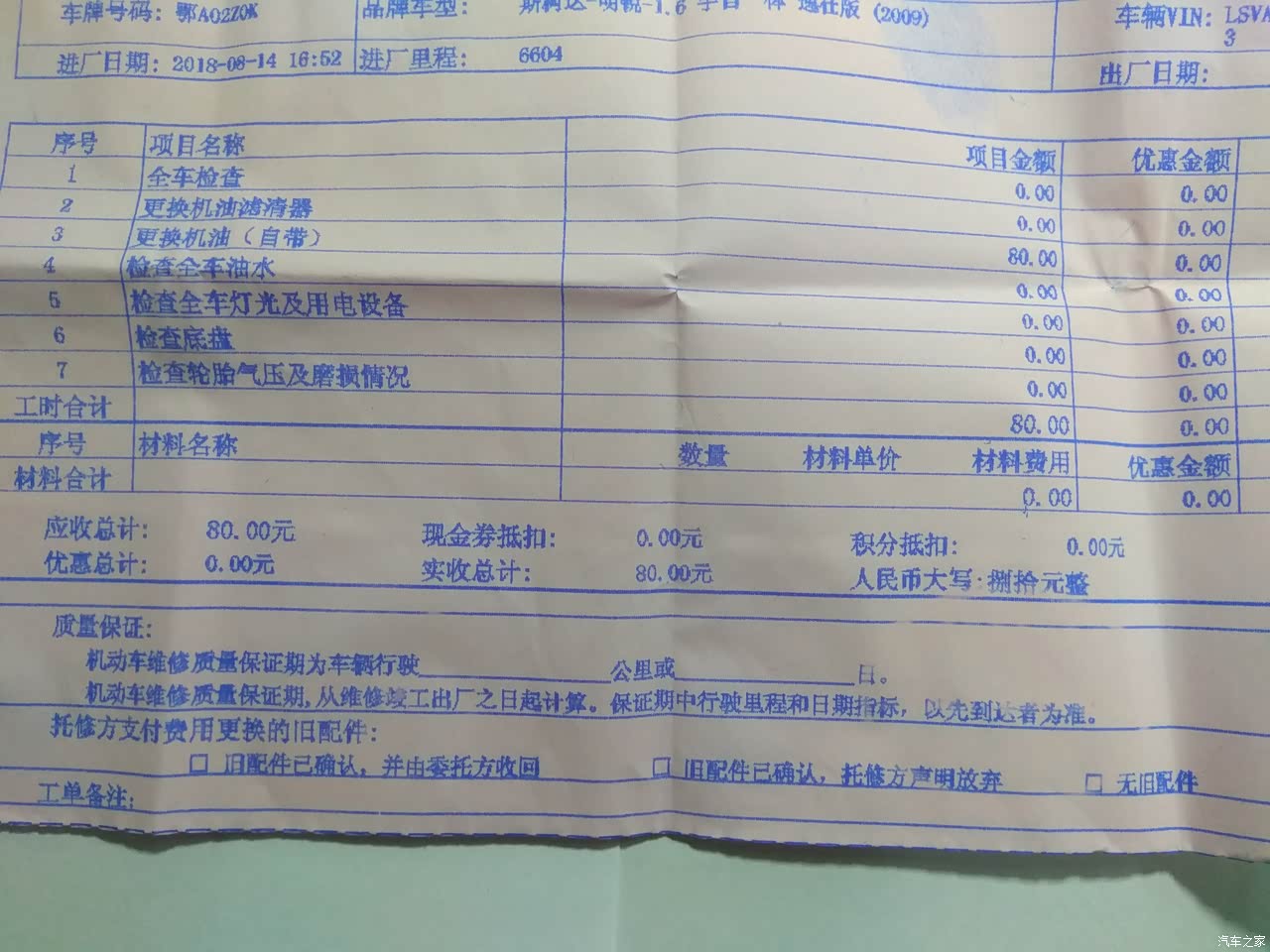 七八月份的时候做的小保养,因为之前开的少,加上我们这见蓝天白云的次数较多,所以三滤积灰的程度还行,所以小保养即可。一般都是自带材料保养,在我们这维修中心保养工时才80元,算很便宜了,操作流程跟4S店基本没啥区别!1.6自吸的机头不矫情!省心……