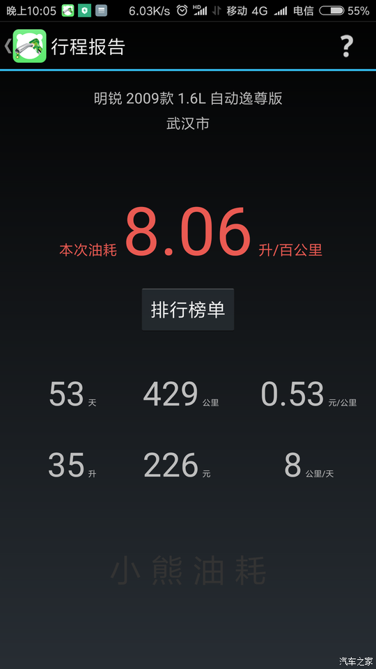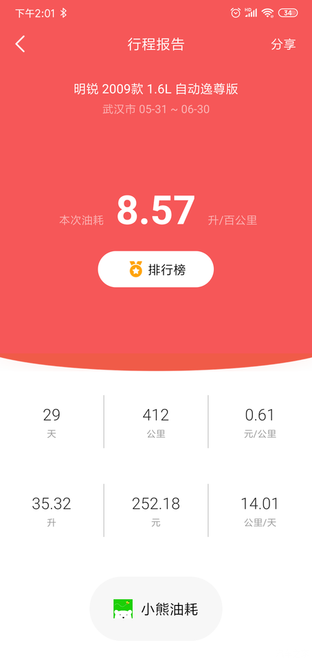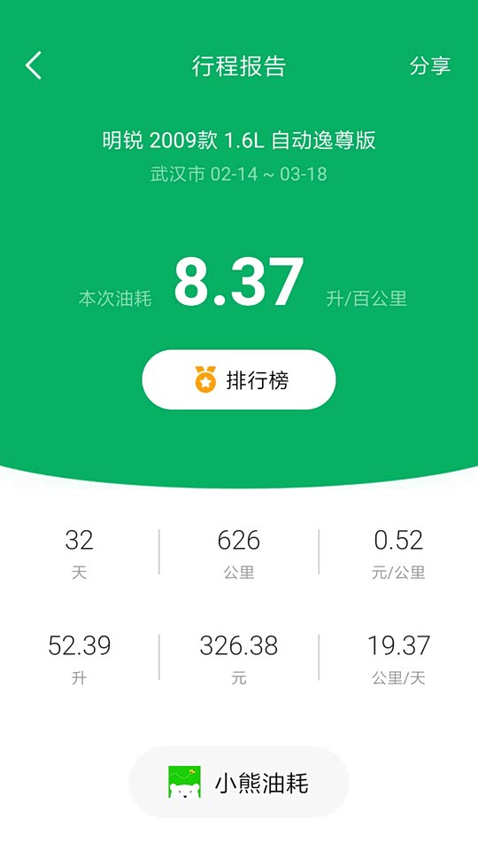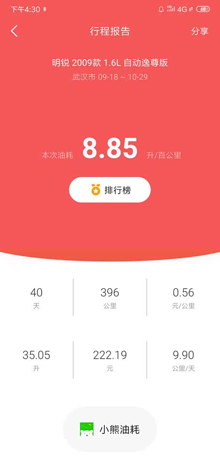 我一直都是用小熊油耗记录的,看起来明锐比我想象中的费油,但是我上次加油还是2月8日加的,到昨天加满,一箱油管了76天,跑了520公里,0.66元/公里,用油51升,油费342元,行驶7公里/天。而且发现明锐的行车电脑记录的油耗还是挺准的,油耗表2显示的是清零之后的总里程油耗,跟我小熊一样,都是9.7升/百公里,不是欢乐表哦!算下来明锐的油耗费用我还是能接受的,毕竟只是城区代步接送小孩而已。