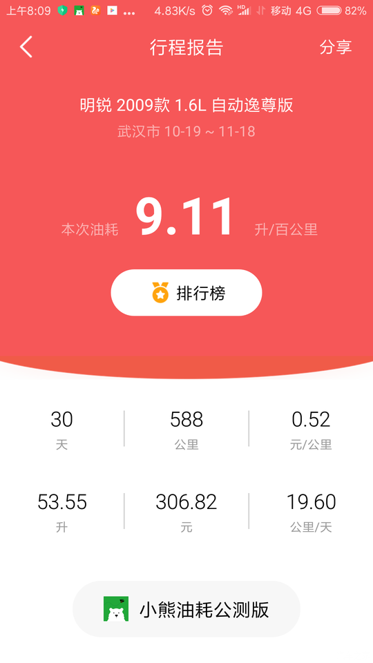 上次发表口碑还是6月份,宝宝放暑假了,我就没怎么开这台车,平时都停在地库里面,为了避免放“发霉”了,偶尔开一下给电瓶充充电,导致这段时间的油耗比较高,但是因为间隔时间较久(一箱油管了53天),跑了429公里,平均下来一天才8公里,所以实际花费也就0.53元/公里,表现可以接受,我的新桑一公里也得0.52元,明锐比新桑重不少,跑的还都是城区短程,这个油耗感觉已经可以了!