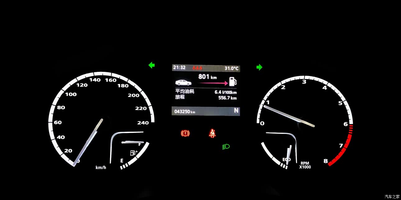 城市6公里,3个红绿灯 2个路口,偶尔堵车表显13个油满满的。跨镇上下班,快速路 城市道路各一半,一半几率堵车20分钟,10个油,不堵车8~9个油