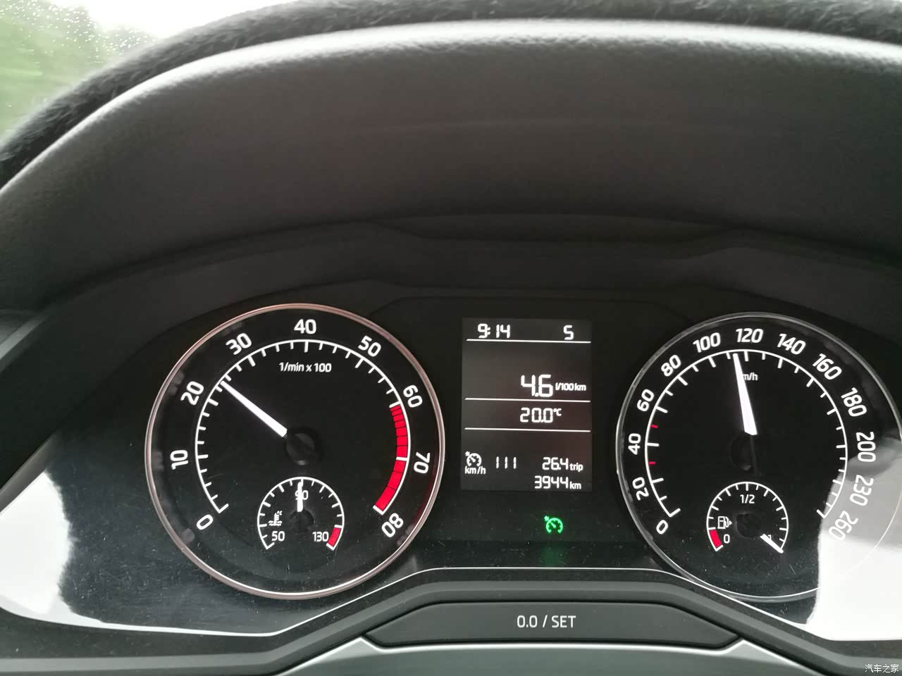 高速上定速巡航110公里时的油耗,5.4升。