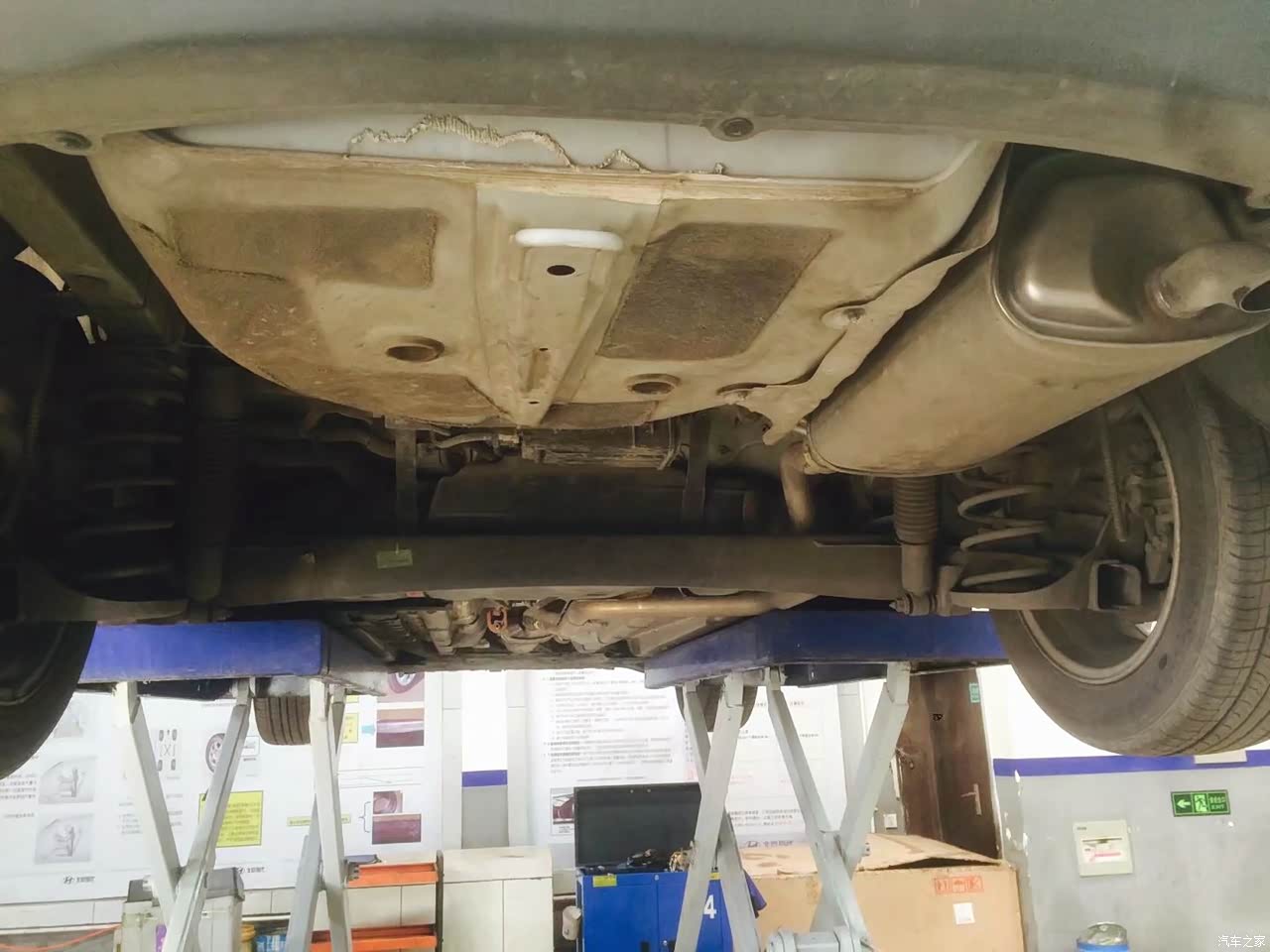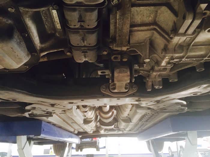看看我的车底盘。不过呢,底盘确实没有好一点的车包装的比较好,下边儿几乎都是裸露在外边儿的。