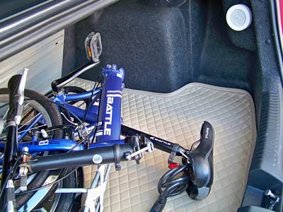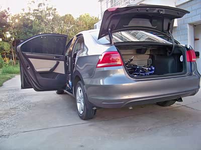空间都比较满意,26英寸山地车放进后排座刚刚关上车门,乘坐五人绝对够用。