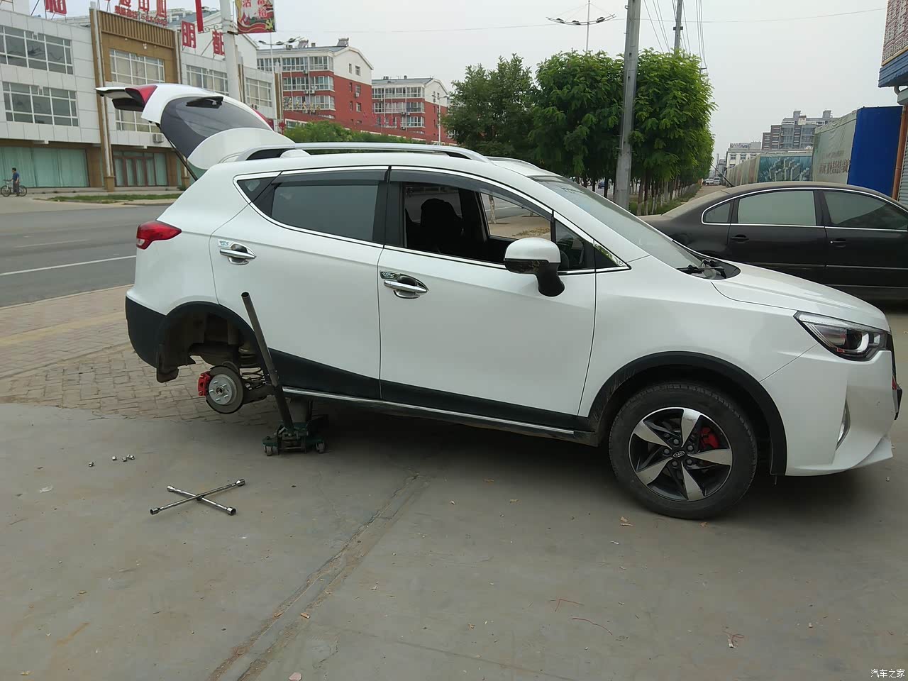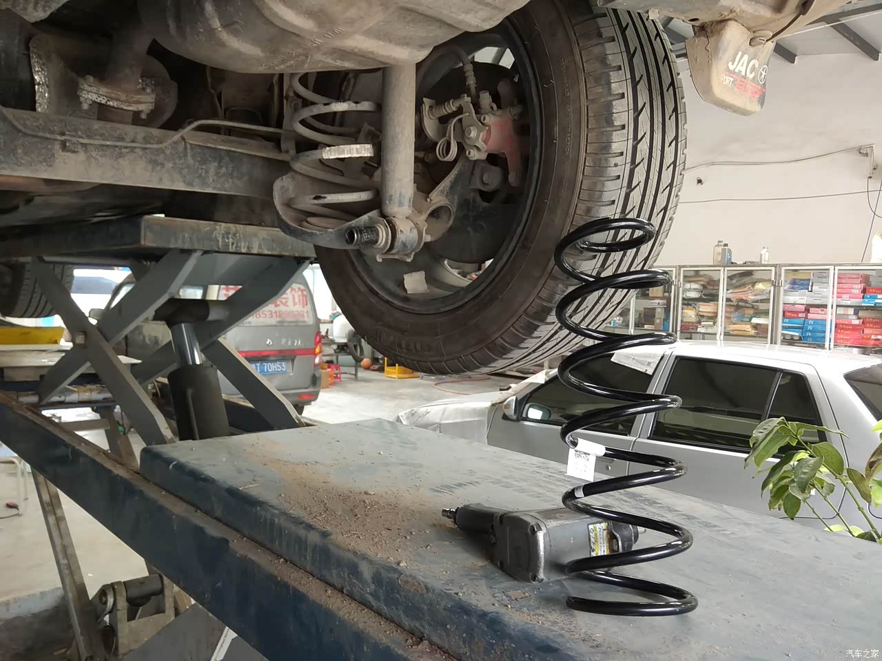 从论坛里看好多车友自己更换了加强的后减震弹簧,效果很不错,自己也很动心。后来淘宝打折下决心买了一对。一直也没时间去换,正好趁这次补胎顺便换了,街上随便选的修理店还挺实惠,补胎加换弹簧一共要了40块。说说更换后的感受,首先外观上,原来换之前前轮与轮眉间距5指左右,后轮不到4指。更换后后轮与轮眉间距大了3cm左右,不再给人塌屁股的感觉,协调了不少。然后感觉上,原来过减速带感觉咣当一下,很硬,更换后感觉缓和了好多,过一些小坑洼路面感觉不那么颠了,很结实,很有韧性的感觉。不过也有个问题,就是更换完了以后后面翘了,导致大灯近光靠下了,虽然有大灯高度调节,调到最高也只能照20-30米左右,看来要有机会去调下灯才行了。总之还是很不错的,推荐大家可以更换。