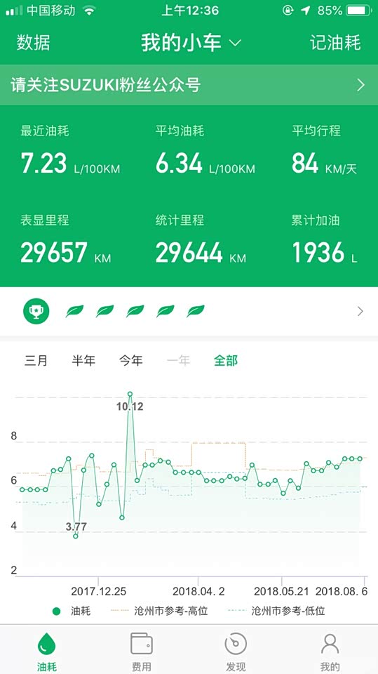 基本上下班,一个月一次高速,1000公里左右,总体来说油耗挺低,高速5个左右,上下班路正在修路,跑不起来,6个多,等几天路修好以后,应该还能降!
