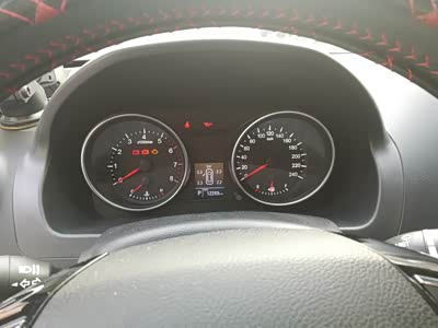 双桶的仪表盘,转速,车速,油表,水温都在里面用指针显示,中间夹着一块我认为迷你的小液晶屏,还是黑白的,里程油耗胎压什么的显示倒是挺全的,需要按仪表上的旋钮更换显示,长按就能清零,不过需要从方向盘中间伸进去按。