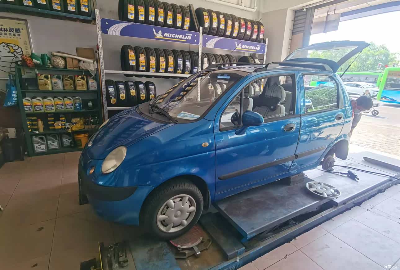 但是进行了两项小投资。这次先说一项吧,更换了四个轮胎。其中三个是新买的,一个是原车的备胎。把更换下来的轮胎选了一个状态相对较好的,作为备胎,以备不时之需。这里要先表扬一下小乐驰,为什么呢,在恩多售价不菲的车辆都采用非全尺寸备胎的大环境下,不足4万售价的小乐驰竟然使用了全尺寸、型号性能与正胎完全一样的备胎,这一点上真心是不容易啊,毕竟在很低车价中,轮胎的价格所占比重要大出了很多,如果采用非全尺寸的备胎,一定是可以对售价产生更明显度影响的。买的轮胎是在某东上网购的,本来是要采购国产品牌的,结果在自营中只用一条胎了,没办法买来其他的,具体的耐用性实际情况等后续使用一段时间后专门谈一下。