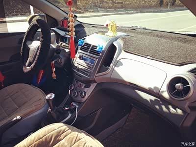 内饰4分 小爱的中控大面积都是塑料材质,但搭配上仿皮的纹路,并没有显得很廉价。方向盘虽然没有真皮包裹,但是我后期还是自己动手缝制了,看起来还不错。车内最大的亮点就是仪表盘,除了转速表是传统的机械指针,其他的都是电子显示。时速显示在仪表盘中央,字体做了加粗处理,看上去非常醒目。中控下一个亮点就是仪表台两侧经过特殊设计的飞机涡轮式的旋叶出风口,不仅提高了车内的运动氛围,也凸显了小爱的独特个性。