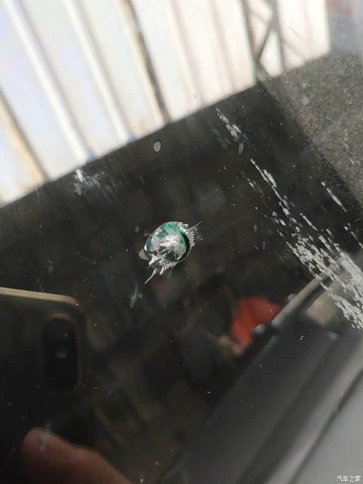 买车时前风挡玻璃就破了一个洞,可惜自己当时没发现。