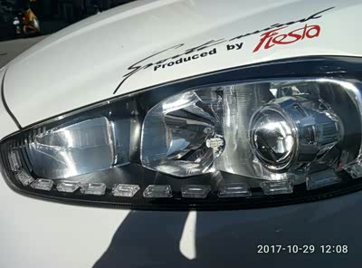 嘉年华大灯修长,原车是分体式大灯,比H4 的要好很多,但原车近光还是蜡烛灯,对面远光会车人家不带理会的,实在忍不了自己拆灯改了透镜氙气,前几天又把雾灯改成双光透镜雾灯,实现四近六远,那效果。。真的造孽啊