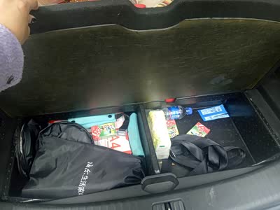 后备箱空间设计还不错。放备胎的上面还有四个大格子,一个格子可以平铺放两双鞋子可以分类放些东西。如果有大件的话可以直接放在格子上面(格子上面还有一层平台),放三个行李箱随便放。