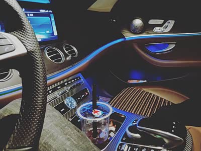 中控仪表台一整块大屏,高档 大气 上档次! 氛围灯超级给力,64种颜色 喜欢什么就换什么颜色 但是我钟爱蓝色,因为奔驰的这个蓝色在众多颜色中特别的耀眼!