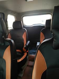 内饰还行吧,棕黑色的耐脏,中间独立座椅很上档次,自己铺了地胶,在网上买了全包围脚垫和pu的座套,还送了手缝的方向盘套,我姐缝了一个小时,挺完美的,一下档次就上去了,真是人配衣裳马??配鞍,??狗配??铃铛跑的欢呀??
