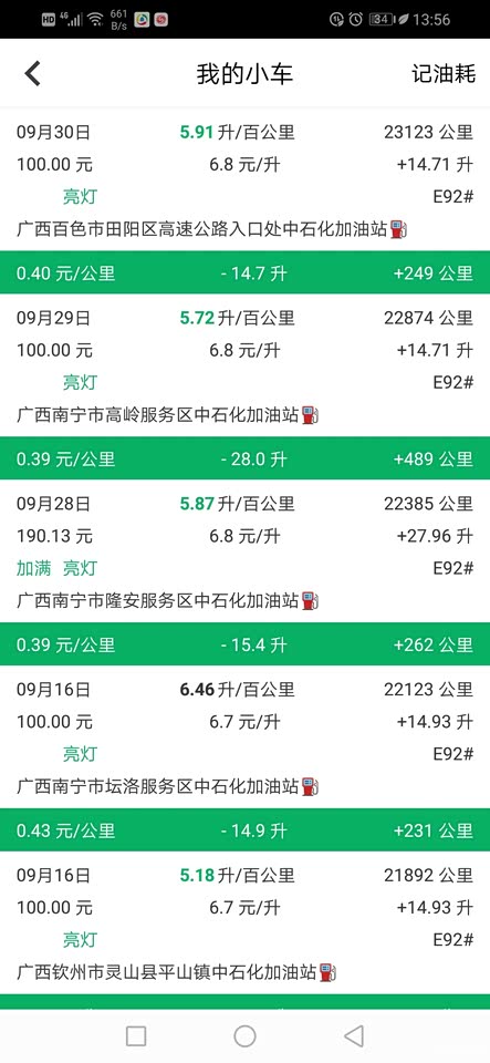 油耗方面,驾驶方式的不同,油耗不同,100元,能开到276.6亮灯,也有260,低的油耗4.47也开过,上面的4.7也有过,高8.7升也有过,看驾驶手法吧,2021年11月6日还记录油耗,现在,偶然还运算油耗,少记录了,本区域就加油100,长途灌满,