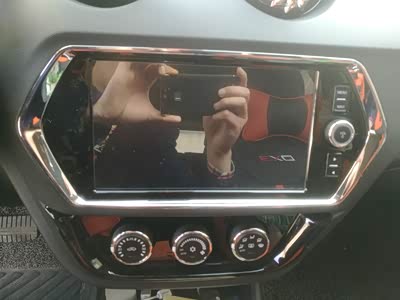 仿法拉利跑车左手“一键启动”,四炮筒空调出风口,真皮方向盘,车内饰品塑料感强,仿皮材质座椅,锯齿档位,空间宽大,黑红色搭配,储物处丰富,9寸中控大屏,就是按钮放到右边很不方便,还有大屏位置偏低。