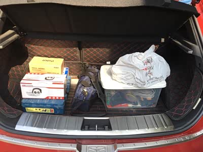 后备箱看上去有点小但是还是满能装的,主要是车内储物空间少了点,前排两个门没问题,但是后面两个车门上的储物盒有点搞笑,水放不下,不知道那个洞设计出来是干什么的,后坐中间扶手放下来还是能放两瓶水的,原车没扶手箱,杂七杂八的只能全堆手套箱里,受不锯掉那个电影院扶手换了个扶手箱