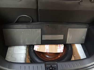 后备箱自己加装了备胎,充电器就放在后备箱了,还有一根延长电线,所以就装不下什么大件了,不过好在奔奔后排座椅可以46分放倒,拉些东西还是方便的。车门放水杯,矿泉水还是可以的。