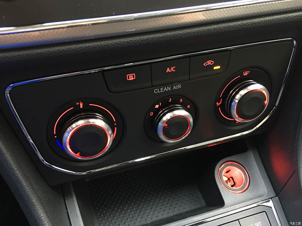 手动空调换了旋钮调节,和内饰风格很搭。用起来很方便,告别洗衣机旋钮