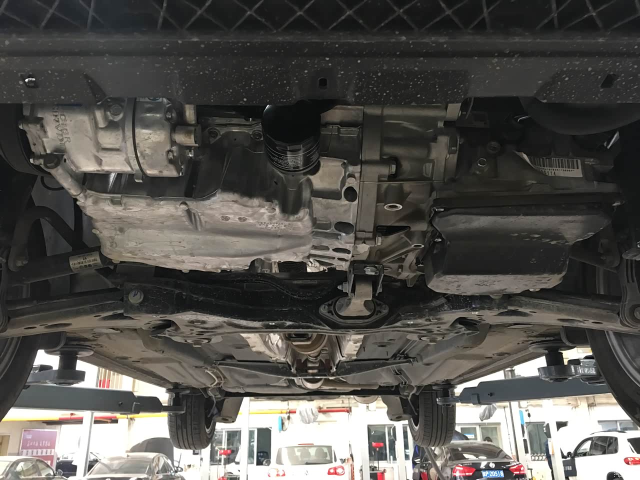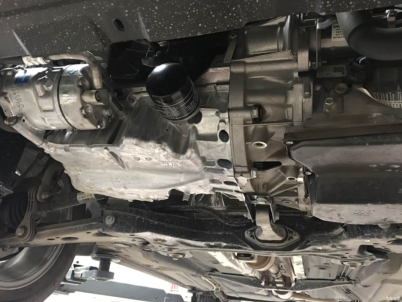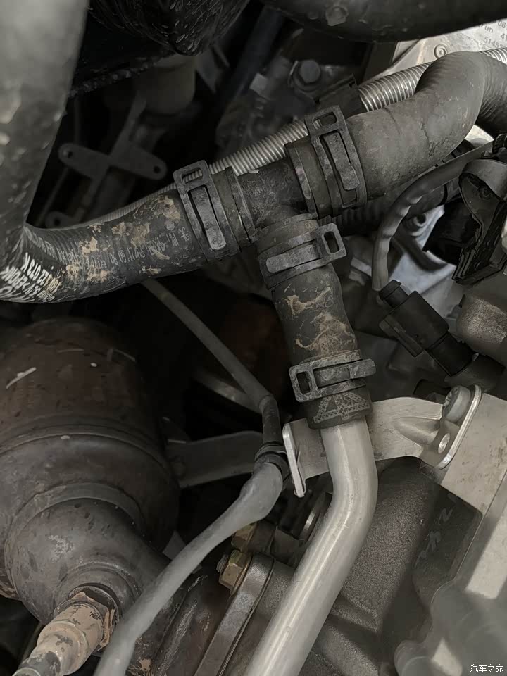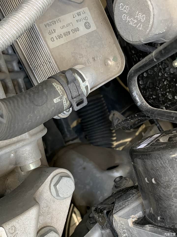 此处感觉有漏油的痕迹,还有锈迹还不知道是什么原因,有知道的车友麻烦私信一下,我好去检查一下。