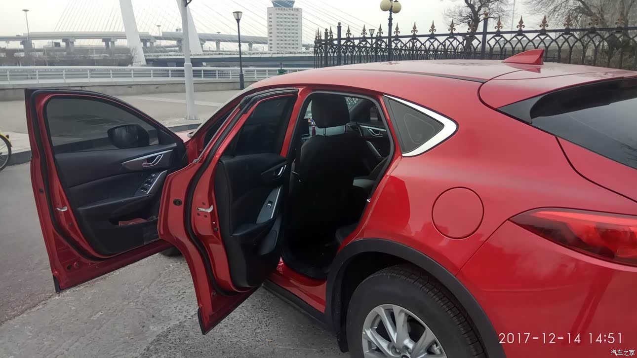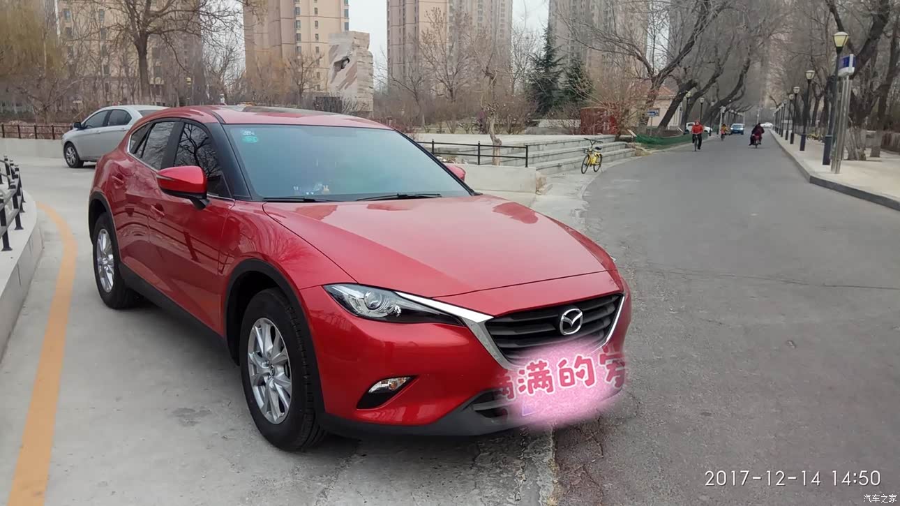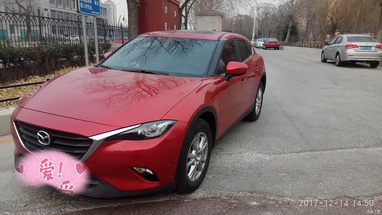 最满意的就是颜值,侧面确实太好看了,去 4s店里买车的时候,一直在纠结买红色还是白色,本人男,之前的车也是红色,所以开始倾向于白色,但是看到实车,还是觉得红色最骚,最亮,我爸爸也喜欢红色的,自己一想马自达就得买魂动红,否则和咸鱼有什么区别,哈哈,开玩笑。买完以后家里亲戚都说好看,还都说这车这颜色就是给媳妇买的,本人还没有媳妇,哈哈。