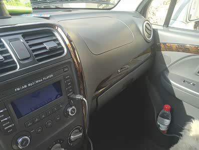 有纹路的塑料面板,还不错,收音机一个,后门两个假喇叭,播放音乐还不错,多种音效,座椅前后调节的是两根小细铁棍拉着一根细铁丝,极不正规。最喜欢仪表面板,晚上开灯很好看,新车买来基本没有异味。就是不知后备箱右边的安全带如何使用。