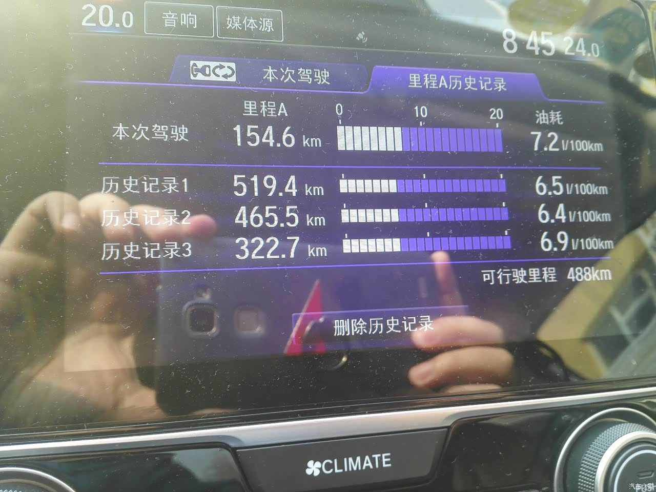 十代思域的油耗很不错,平时温柔着开平均6.5。在江苏冬天天气冷会稍高点6.8,气温到15度开出个6以内也是可以的。小绿叶开与不开差距不大,开了也就油门踏板反应慢点,丁正常情况不建议开,都说小绿叶开着容易积碳。