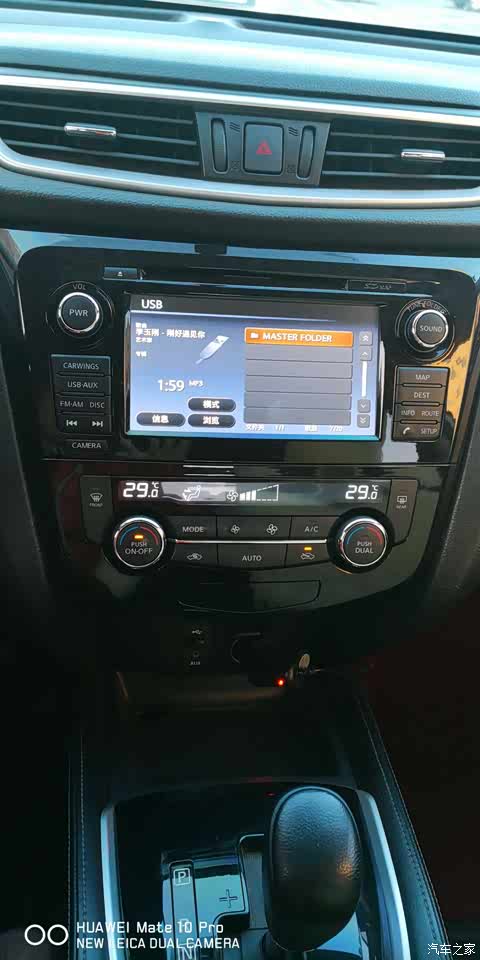 首先要说一下360环车影像,这个对于媳妇来说十分重要打开这个功能整个车的位置一览无余,然后是日产的CARWINGS系统,服务非常好,而且稍微有一点异常,客服就会打电话或发短信。原车的多媒体车机放音乐这个功能只能连接苹果,不能连接安卓,这个比较不满意。打电话是都可以连接的。