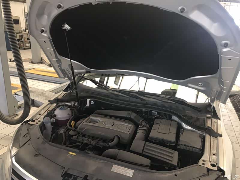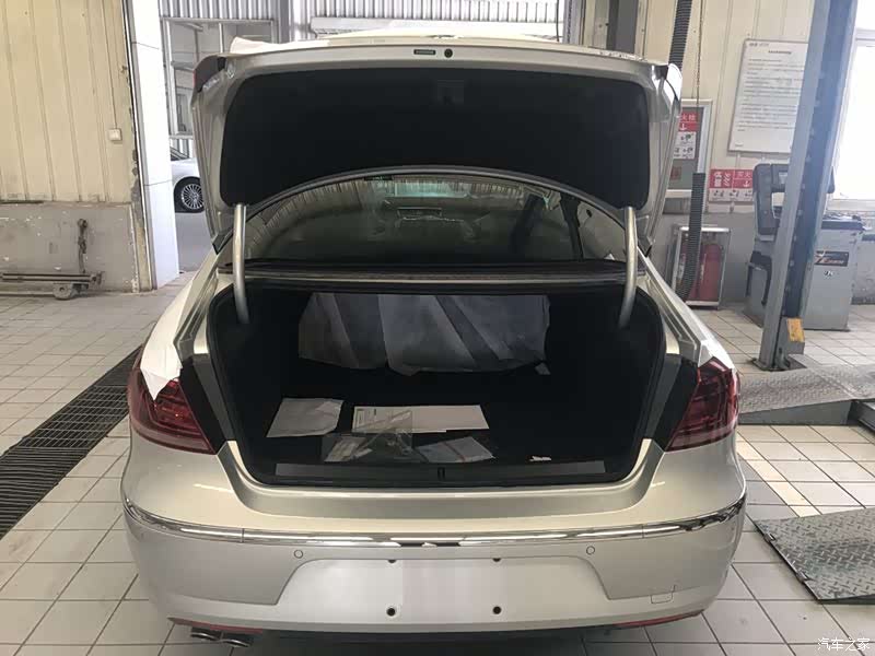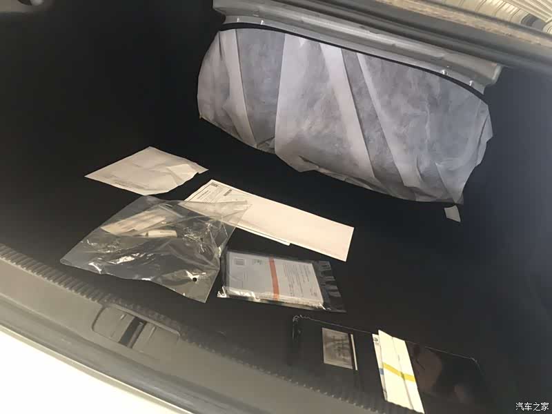 这是当时提车前去车间做检查时拍的后备箱的照片,容积够大好像是532L,铰链设计,放东西很方便