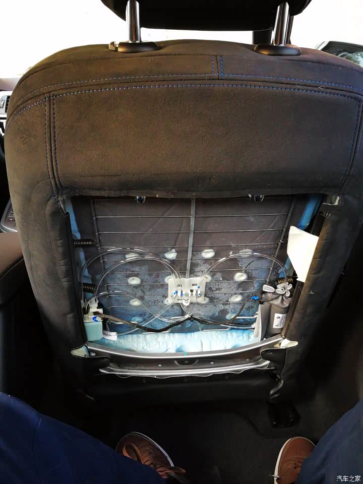 进口alcantara座椅配织布,包裹性非常好,前排座椅带腿拖带侧翼加紧,没异味。缺点是有点硬,建议配合腰靠或者自己加海绵做腰拖