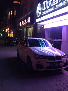 从小就喜欢宝马的品牌,从未想过去买除了BMW品牌之外的车,终于今年25岁换了车,也是圆了自己蓝天白云的梦,喜欢X6,但是现在还年轻刚创业,口袋不够深,所以选择X4,刚开始去看车的时候,我只喜欢M套件的X4,因为我觉得它的前脸大包围真的比X套件来的霸气,总体感觉M套件的X4比X套件的X4大一些,胖一些,肌肉流线饱满些,还有喜欢M套件的丁字裤M方向盘和具有非常好包裹性的跑车座椅,这些都是X套件没有的,其实呢,有一个比较幸运的地方就是它还原厂配备的原厂舒适进入和一脚踢功能,如果你买了车后期加的舒适进入都是副厂的舒适进入,而我这台车原厂自己配备的舒适进入和一脚踢,纯原厂,但要多加8000元,但我觉得值了,原厂,而且我告诉大家,舒适进入真的很实用,我几乎都没掏过钥匙开关车,手指一按就锁车开车,还有一脚踢,脚一扫就开关后备箱,真的很装b,最后的就是它有着很高的颜值,运动型轿跑SUV,流线很好,具有跑格和拉风感,对于我这个颜值控,X4的颜值真的让我如痴如醉,最主要的就是它不是街车,回头率很高,而且颜值真的没话说,特别是M套件的X4