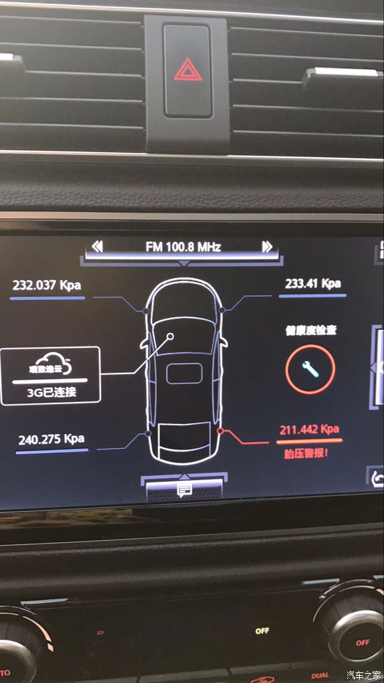 胎压监测也是清晰明了。对于女司机来说真的很不错,能随时知道汽车轮胎气压是否正常。