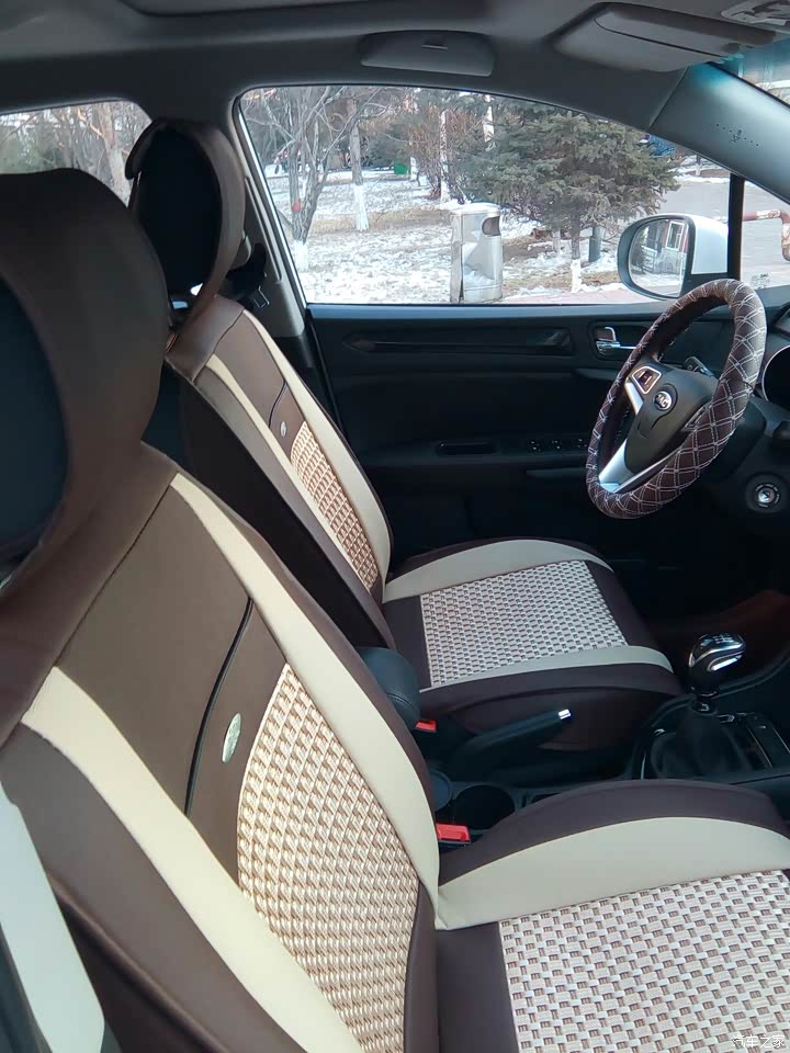在网上买的坐垫,看着很高档,而且显得座位更大。